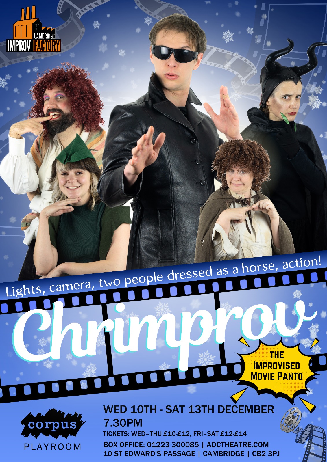 This production is suitable for ages 16 and over. Cambridge Improv Factory aim to perform to the age range of those in the room, but this is an improvised show so cleanliness is not guaranteed. Expect adult humour, comic book violence, innuendo and light swearing. The Saturday matinee will aim to be more family friendly, only taking audience suggestions that are appropriate for ages 12 and over.